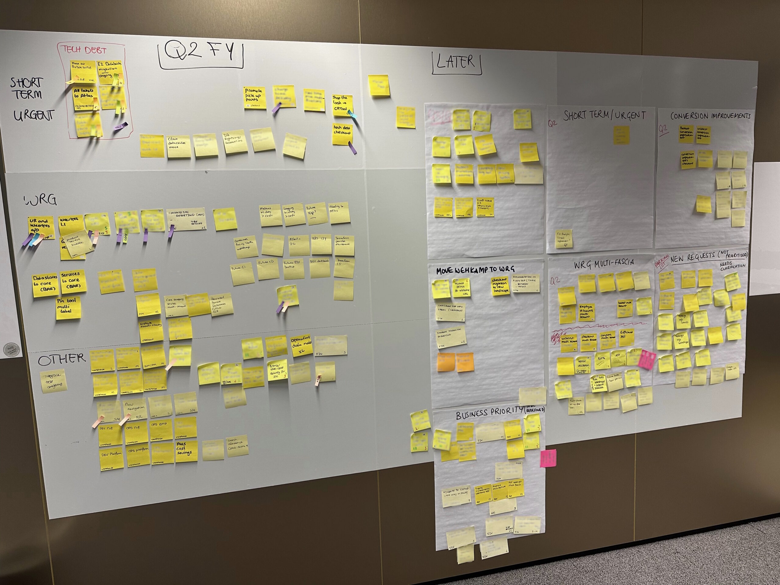 Later versions of the wall tried to plan further ahead. Unfortunately, I wasn't able to find a more recent wall with stickies, so this is what we could come up with: