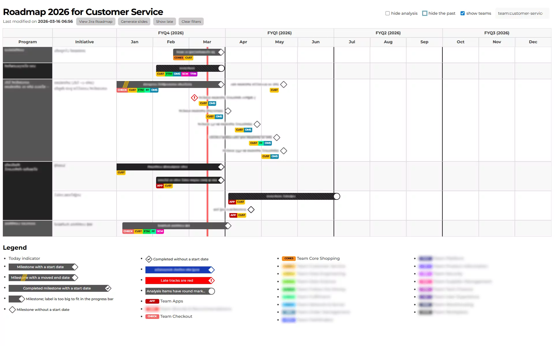 Which topics are late? Which topics have been replanned? Which topics are being investigated? The roadmap should give leadership useful input for their weekly meetings. - Access